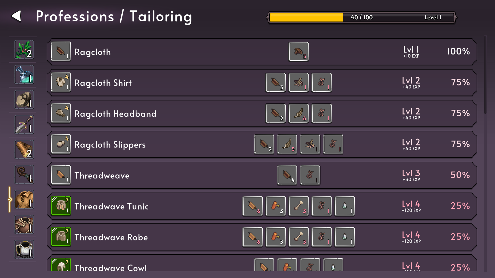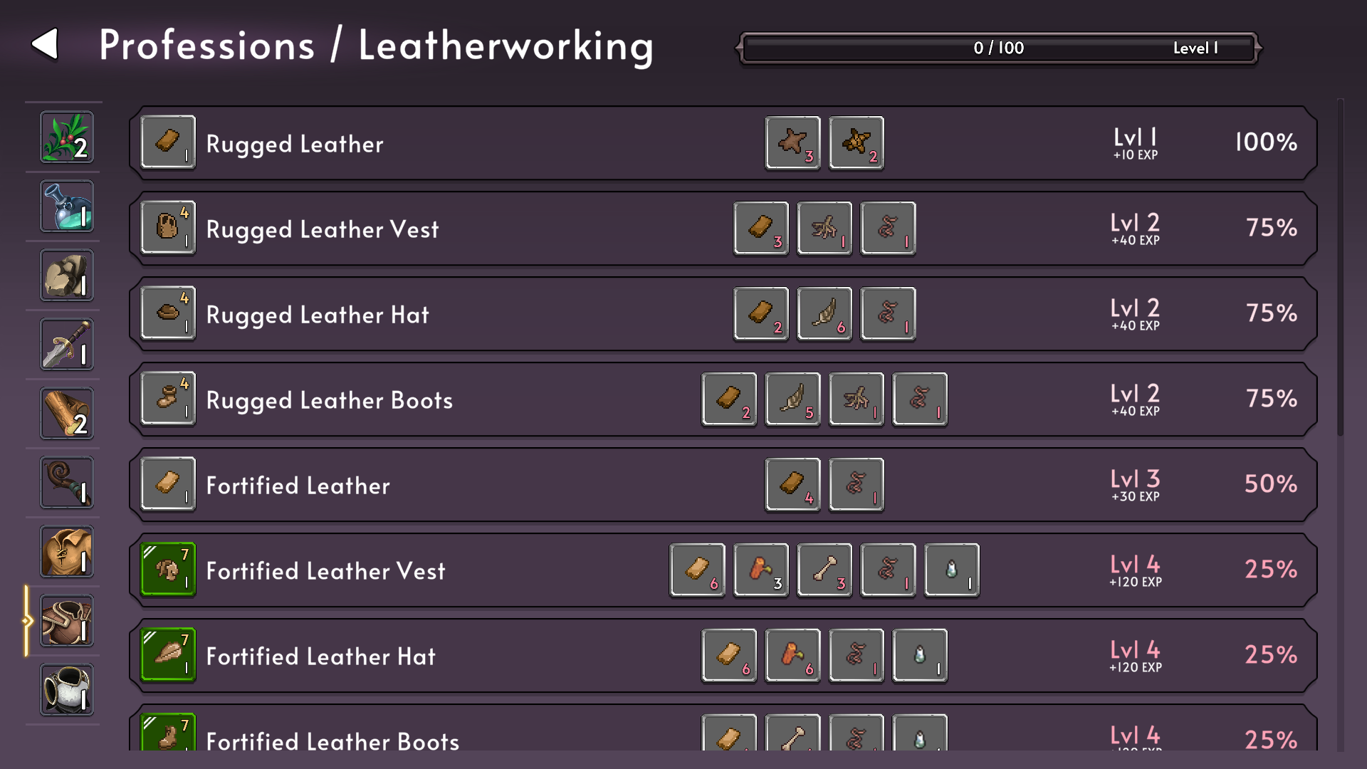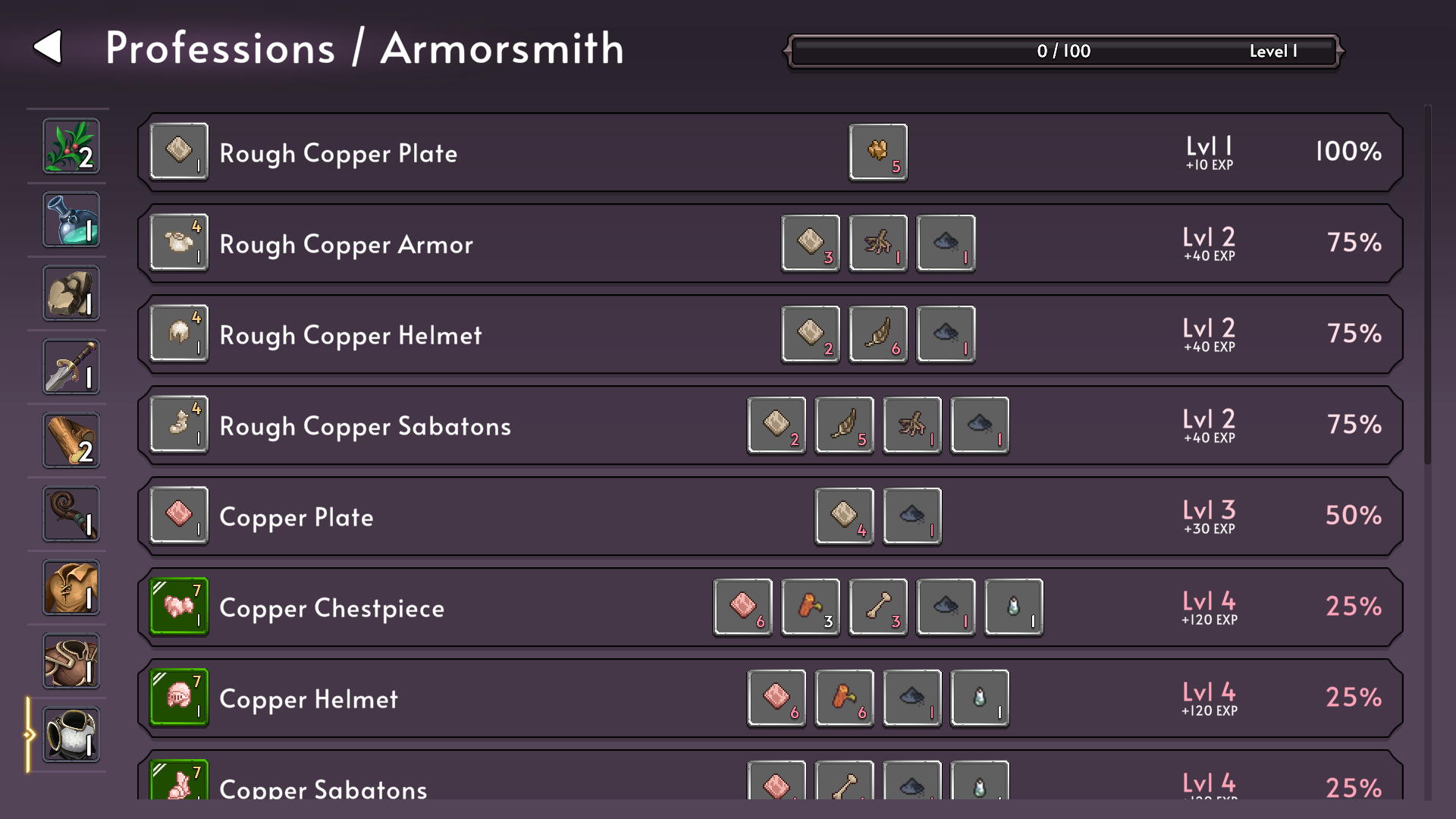 - Adicionadas 3 novas profissões: Alfaiataria, Couraria e Forja de Placas.