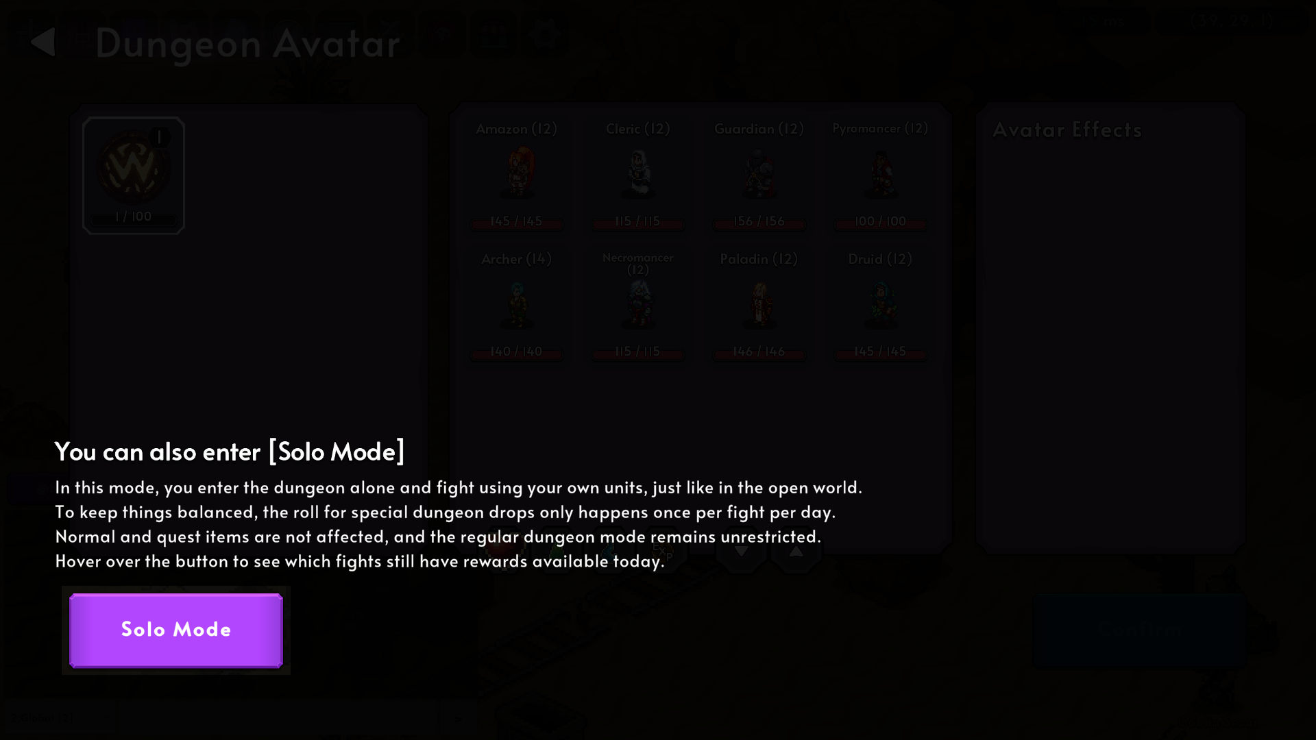 - Implementado 'modo história' nas masmorras, permitindo entrar sozinho com limite diário de loot.